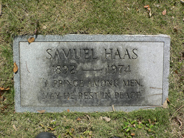 Samuel Haas's tombstone |